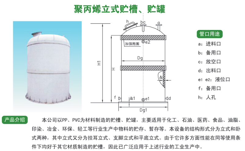 产品名称: 聚丙烯立式贮槽、贮罐