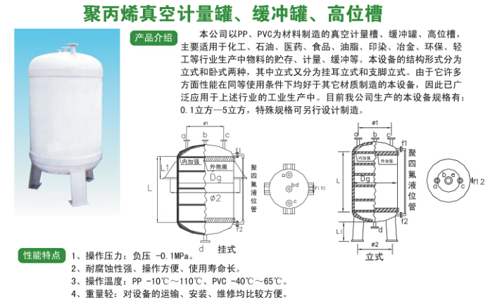 产品名称: 聚丙烯真空计量罐、缓冲罐、高位槽